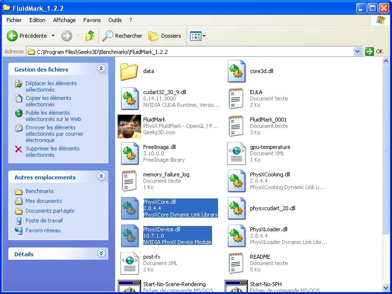 PhysX should now work. But if you want to test on FluidMark 1.2.2, you need to delete these two files: