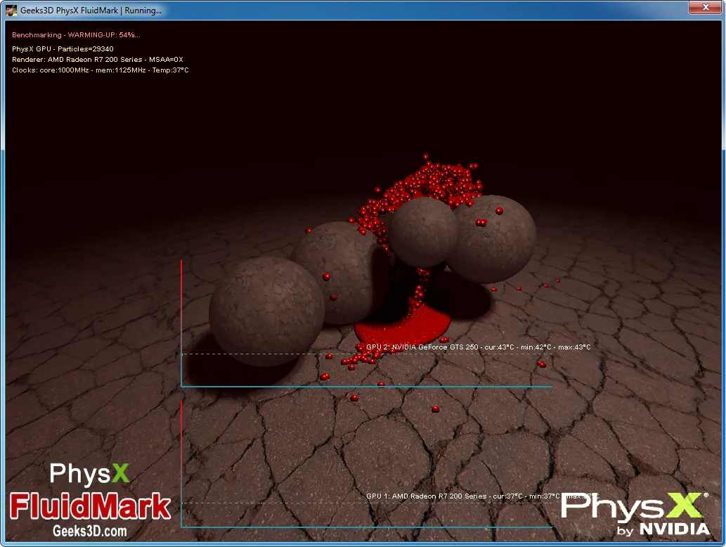 You can now launch Fluidmark and validate that PhysX works. The window should mention “PhysX GPU” while running.